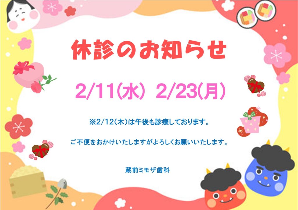 2月の休診日のお知らせです